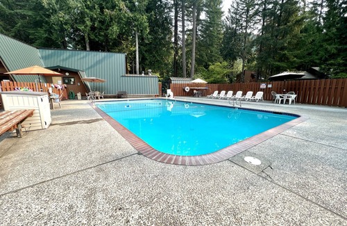 Yes, this Mount Hood Village cabin has a swimming pool. Check the Facility Overview section for details about the pool and other available facilities.