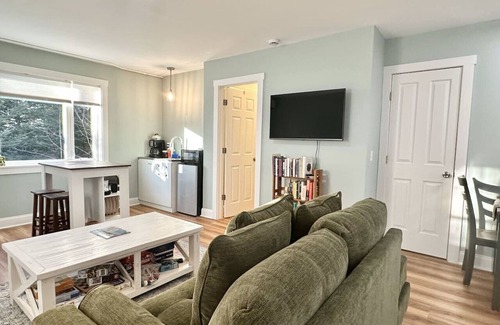 Deer Run was once a garage that has been renovated into a standalone home in Bar Harbor near the head of the island in Town Hill. The unit is setup as 2 Studio Apartments combined into 1 Unit. Each floor has a Queen Bed, Living Room, and Bathroom. The setup is perfect for 2 groups of people traveling together while still each having their own space!