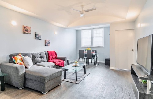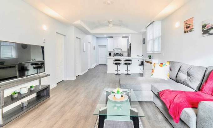 This two-bedroom modern farmhouse inspired apartment across from Chedokee Park, offers all the amenities you'll need during a quick getaway - perfect for couples, groups of friends or small families! Enjoy preparing your dinner in your bright newly-finished adjoining kitchen, getting toasty and warm inside while watching on the smart TV in your open-concept living area with high ceilings, or exploring the natural scenic views around the city of Hamilton.