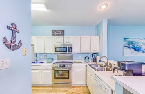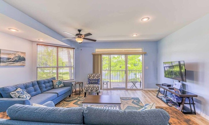 This newly updated condo sleeps 8 in 2 beautiful bedrooms, 2 full baths, and a comfortable open design on the first floor of Cypress Point. The living room, furnished with comfy sofas and a large flat-screen TV, boasts floor-to-ceiling windows that flood the condo with natural light and vibrant scenery. Step out onto your private balcony to enjoy views of lush green fairways, manicured lawns and a sparkling community lake. Cooking is a joy in the fully equipped kitchen, complete with modern appliances and all the tools you need to prepare your favorite meals. Dine together indoors at the family table or alfresco on the patio while soaking in serene golf course views.