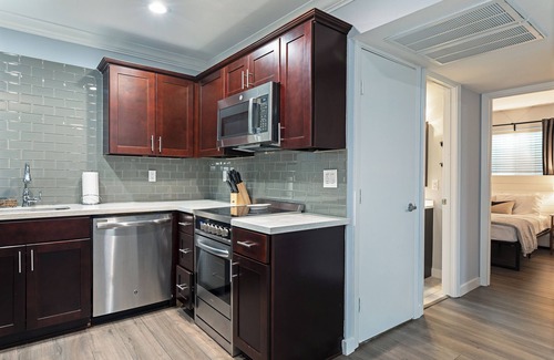 Fully furnished. WIFI, Ethernet port (modem wire access) and Smart 50" Roku TV. Central AC & Heat. Office Desk. On-site Washer & Dryer. Custom Cabinetry. Full Kitchen. Fully Stocked Kitchen with Utensils, Plates, Pots, Pans and Cooking Spices. Complimentary Coffee and Water.