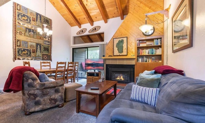 Escape to this cozy townhome nestled among the trees, from this home, you will be surrounded by stunning nature with a stream running nearby, a network of National Forest trails within walking distance, & the renowned Patton Beach just a 2-minute drive away. After a day of outdoor fun, return to this 2 bedroom home where you can enjoy a space filled with rustic mountain vibes, cozy furnishings, great shared amenities. The perfect launching pad for year-round fun in Tahoe!