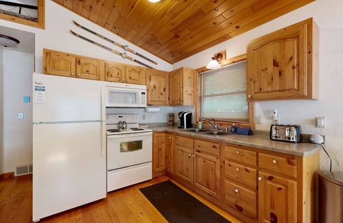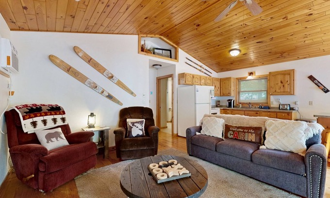 There is nothing like enjoying a lakefront location during your vacations, right? Cabin on the Loop-Upper is located directly on Big Lake, located on the Three Lakes Chain o' Lakes, offering a nice sandy-bottom swimming area. Feel free to take the two kayaks provided to the lake for a thrilling adventure! The backyard offers direct access to the lake, and also boasts a convenient picnic table for meals al fresco, a gas grill, and a firepit. There are so many things to do here! If you are more of a stay-at-home folk, you will be delighted by this upper-level home. It has a cozy open floor plan that seamlessly combines the living room, kitchen, and dining area. Come back from the lake to snuggle up in front of the wood-burning fireplace and pull out any of the board games provided. There is a gorgeous, wooden Tic Tac Toe game on the coffee table. The wall-mounted Smart TV allows you to stream your favorite movies or series, and the added DVD player is ideal if you brought your favorite DVD movies with you. Feeling hungry? The well-appointed kitchen has all the appliances you could need to prepare delicious homemade meals for your guest. There is a nice coffee maker that coffee enthusiasts will surely appreciate!