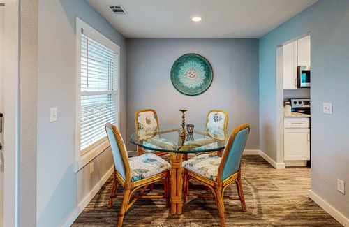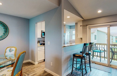 Book your next vacation getaway at Shell We Dance. This newly remodeled second-floor condo has a view of the shared pool, hot tub, and grilling area from the balcony, kitchen, and living room. This home is decorated throughout with a neutral color pallet of the ocean and sand. The full kitchen has everything you will need to prepare freshly cooked meals with stainless steel appliances, granite counter space, a pantry, a regular coffee maker, dishes, basic pots, pans, and utensils. The dining table is accommodating six guests with additional seating for two at the breakfast bar. The living room boasts an overstuffed couch and loveseat, made for relaxing with a TV, cable, and Wi-Fi. Enjoy sipping your morning coffee on the balcony in the bay breeze. Back inside, the guest bedroom (BR1) contains 2 Twin size beds, nightstands, a chest, a TV, and a closet. The hall bath is equipped with a vanity and a tub/shower. The master bedroom (BR2) is made up of a Queen-sized bed, nightstands, closet, dresser, TV, and chest. The ensuite bathroom provides a large vanity separate from the tub/shower. For your convenience, there is a full-size washer and dryer located in the laundry room at the end of the hall with an iron and ironing board. Enjoy the close walking proximity to the Marina to watch the dolphins. Shops, restaurants, and bars are only 0.5 miles away and it is a short 1.3-mile drive to the beach.