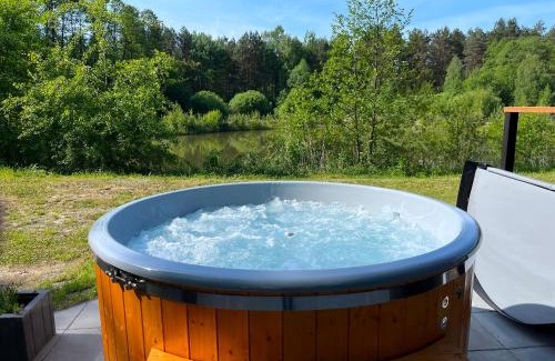 2os Domek z prywatną balią z jacuzzi, kominek, na odludziu, jedyny na 10000 m2 terenie, widok na las, lubelskie Roztocze offers accommodations in Oseredek, 26 miles from Zamość Town Hall and 26 miles from Zamość Synagogue. This property offers access to a terrace, free private parking, and free Wifi. The vacation home has an outdoor fireplace and a hot tub. The air-conditioned vacation home consists of 1 bedroom, a living room, a fully equipped kitchen with a dishwasher and a coffee machine, and 1 bathroom with a hot tub and a hair dryer. Guests can take in the views of the lake from the balcony, which also has outdoor furniture. There's also a seating area and a fireplace. During warmer months, you can make use of the barbecue facilities and eat on the private patio. Guests at the vacation home can enjoy cycling and hiking nearby, or make the most of the garden. Zamość Cathedral is 26 miles from 2os Domek z prywatną balią z jacuzzi, kominek, na odludziu, jedyny na 10000 m2 terenie, widok na las, lubelskie Roztocze, while Roztocze National Park is 12 miles away. Rzeszów-Jasionka Airport is 67 miles from the property.