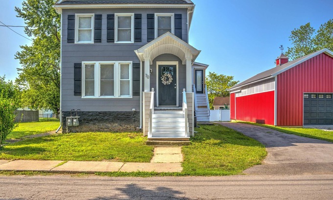 This is an old farmhouse converted to a two unit multi-family property. The entire house will sleep 14 adults max and a toddler - no more than 15. House / each unit has Central Air / Air Conditioning - AC and is completely renovated / restored w/ all the amenities to make your stay fun and easy!