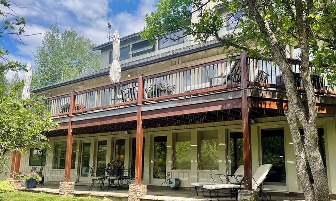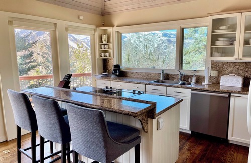 Beautiful 3 bedroom, 3 bath home that sleeps 10 nestled on prestigious Red Mountain with stunning direct views of Aspen mountain and surrounding ski areas is the perfect retreat for your mountain getaway. Open floor plan ideal for gathering, with wall-to-wall windows & doors that flood the home w/natural light & stunning views. The upstairs primary king bedroom with loft is off the main living area and the downstairs primary king bedroom and guest queen bedroom are located on the lower level, all with outdoor access. Our home boasts an expansive deck w/hot tub & gas grill. Well-stocked kitchen & cozy fireplace perfect for relaxing evenings in upstairs living room. Sonos music system, two living spaces, and parking for multiple cars. 5 min drive to downtown Aspen and base of Ajax “Aspen” mountain. New furniture throughout and outdoor dining and seating for up to 16 on wrap around deck. Jacuzzi on upper deck to unwind and relax as you enjoy stunning sunsets and mountain views.