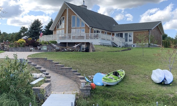 3 acres of Private waterfront property “Events, boat rental, added space“ is located in Cheboygan. 3 acres of Private waterfront property “Events, boat rental, added space“ provides accommodation, featuring Air Conditioner, Pet Friendly, View, among other amenities. This House features Air Conditioner, Pet Friendly, View, to make your stay a comfortable one.