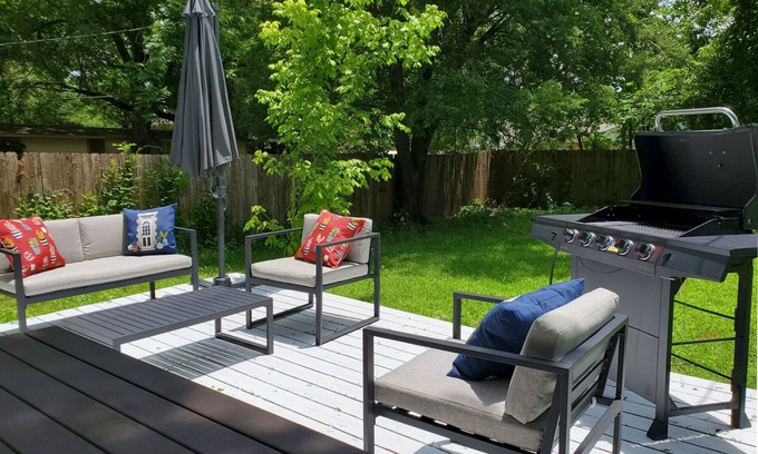 The Downtown Dweller is a five minute walk to Main Street where you can find antique shops, restaurants and live entertainment. Located in a quiet family neighborhood, this home is safe and has access to both driveway and street parking. With enough beds to accommodate 7 people comfortably, we've added an A/C unit both downstairs and upstairs to ensure you are comfortable during the summer heat. There is a great back porch area to grill or sit plus yard space to throw a ball or play some corn hole!