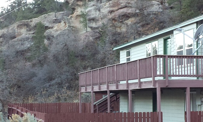 Nestled in the canyon right next to RIFLE FALLS STATE PARK this unique property places you in the middle of an outdoor paradise. The park is a lush greenery with cascading waterfalls, mysterious limestone caves, wonderful trails, abundant wildlife, and great fishing. Continuing on upstream, past the fish hatchery,and on into the narrowing canyon is beautiful RIFLE MOUNTAIN PARK, full of creekside picnic tables, ice caves, and some of the best limestone sport climbing in North America. From there you enter the WHITE RIVER NATIONAL FOREST, 2.3 million square miles of wonderland. Downhill a few miles from the house is RIFLE GAP STATE PARK and HARVEY GAP STATE PARK, 2 clear reservoirs packed full of fun flat water activities. If you are not familiar with this area, I encourage you to check the map and Google it to discover what opportunities await you. For a dose of town, Glenwood Springs is just 26 miles away, Rifle 13 miles.