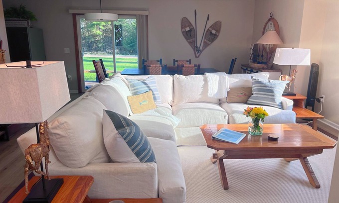 During the winter months, our home comfortably accommodates up to 6 people, with three private bedrooms (with two queen-sized beds and a twin) and an oversized sofa and loveseat (a perfect space for kids). In the summertime, the three-seasons room becomes our fourth bedroom, offering a comfortable additional sleeping area for two more guests on a sofa sleeper (some say this is the best room in the house!), to accommodate a total of 8 guests.