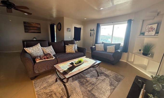 Get ready to relax in this 3-bedroom house in Tucson. With 1 king bed, 1 queen bed, and 1 twin bed, guests will have plenty of space to unwind. Enjoy the convenience of a washing machine, WiFi, AC, and heating during your stay. The 2 bathrooms are equipped with showers for your comfort. We look forward to hosting you at our place.
