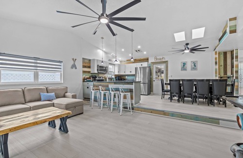 Welcome to your one-of-a-kind getaway, perfect for families, fishermen, and fun-seekers alike! This spacious and unique home offers direct Gulf of Mexico access from your private dock—bring your boat, kayaks, or just enjoy the view. Inside, unwind in your own man cave featuring foosball, cornhole, and putt-putt golf for endless entertainment. With plenty of space to relax, both indoors and out, this home is built for memory-making. Fish off the dock, soak up the sun, or grill your fresh catch. Whether you’re planning a family vacation, weekend with friends, or peaceful retreat, this property offers the perfect mix of privacy, waterfront adventure, and good times.