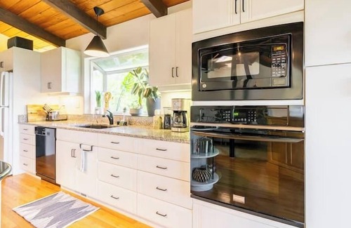 The garden-level suite is a separate lock-off where the host resides. However, the host vacates the premises during bookings, ensuring complete guest privacy. Plans are underway to open this level as a in the near future come spring 2025.