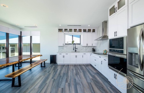 Live a life of leisure at this newly constructed 3 bed, 2 bath home in the heart of Layton. At the main entrance, accessed by the stairs to the side of the carport, you’ll find a lovely open and bright living space with large sliding glass doors and windows, allowing for ample sunlight, and a lovely island breeze. Walking along the hallway you’ll find the primary suite with a king bed and full bath. Located at the end of the hallway are the two guest bedrooms, one with another king bed and the other with a full bed and office/desk space. There is a shared bath just across the hall from both rooms. Outside, along with the grilling area, is a sitting area, pool and loungers for relaxing by the water. Bringing your boats isn’t a problem, as this house has 50’ of dockage and comes outfitted with a 15,000 lb boat lift, fish cleaning station and commercial size ice maker to keep your dinner or cocktails cold for those long days on the water. Follow the canal that opens right up to the Atlantic Ocean or take a short boat ride to Channel 5 bridge to access the Bay.