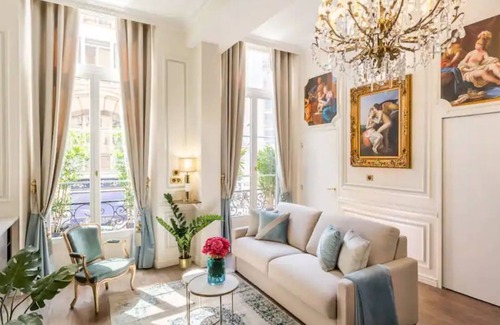 The 3 bedroom apartment is just few minutes walk from Louvre Museum. The apartment has been fully renovated by a French architect. It is located on first floor walkup. The apartment offers high-end furniture and sumptuous fabrics, a perfect place for the travellers searching luxury and freedom.