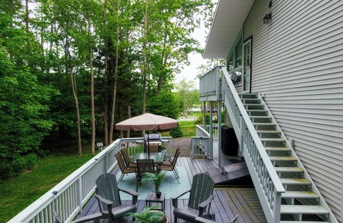 Relax with family and friends at this peaceful 3 bedroom, 2 bath chalet only minutes from the Mountain. 2 hours from Northern NJ and 2 1/2 hours from NYC, this vacation rental is located on a very quiet cul-de-sac that sits across from a picturesque lake and pristine mountains. Whether you are a skier, biker, hiker or just want to get away this is the perfect week long or weekend getaway to enjoy some fresh air and relaxation