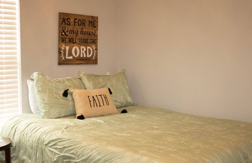 Your family will be close to everything when you stay at this centrally-located place. Located not far from restaurants, grocery stores, downtown, and a fun place for kids and adults. Quiet neighborhood with beautiful homes surrounding it. Easy access to just about anything you need. We have a kids room and we also have a pool that is nice during the hot days.