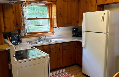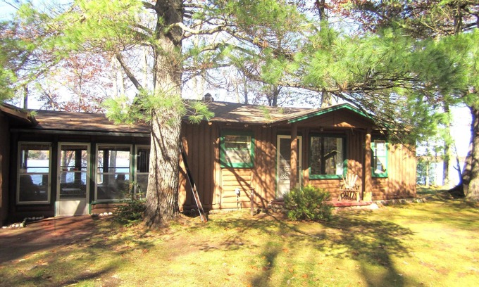 Cabin has a freshly renovated bathroom with a vanity and full size shower over tub. This generous floor plan includes an efficient kitchen (with stove and refrigerator), living room with fireplace, and large dining area. New flooring throughout cabin, Attached screen porch with wood cathedral ceiling acts as an additional family room. An extra enclosed porch/sun-room overlooks the lake and connects to your own private deck. A free-standing charcoal grill is available for guest use off the deck. Even if it rains, You are gonna love the views from the lakeside 3 season sun-porch and deck and how close you are to the lake, or take a trip , only 5 miles to Minocqua attractions. you can have a short Walk to Black Bear restaurant for great food and music. Hiking trails nearby. plenty to do on the Lake without leaving, fire-pit and dock provided