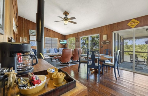 3 bedroom cabin on the Gulf that accommodates 8 guests & one pet 3 Kayaks too is located in Cedar Key. 3 bedroom cabin on the Gulf that accommodates 8 guests & one pet 3 Kayaks too provides accommodation, featuring Entertainment, Child Friendly, Parking, among other amenities. This House features Entertainment, Child Friendly, Parking, to make your stay a comfortable one.