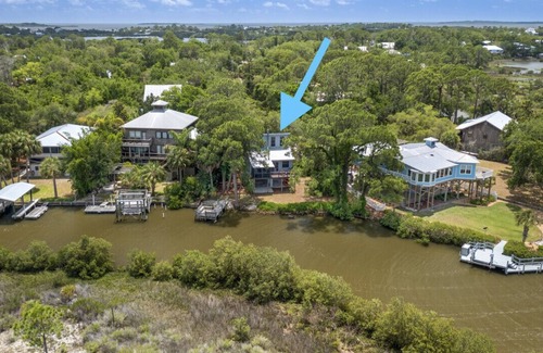 The Flounder Inn is a secluded Gulf-side, waterfront location with beautiful sunset views and a private dock. Charmingly rustic, this family cabin sleeps eight people comfortably. Pine wood floors, cypress walls, and high ceilings welcome visitors to this warm and inviting vacation home. An open plan with plenty of seating with all the necessities including a wood stove (firewood can be purchased locally), rounds out this unique and cozy cabin by the sea. Explore the gulf with our 3 complementary kayaks.