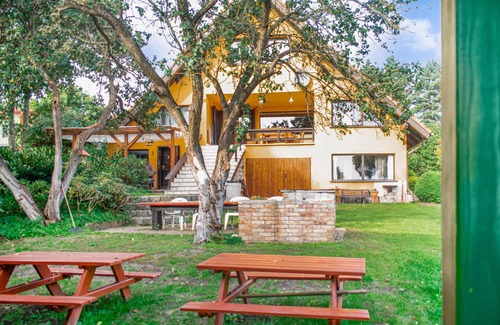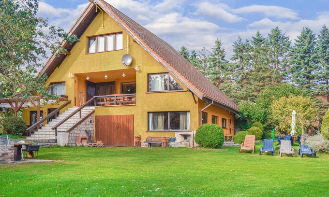 This apartment is cosy and tastefully furnished, with one bedroom as a connecting room, as well as a charming and rustic design. The whole atmosphere is very natural with wooden furniture and exposed beam ceilings. In addition to the tiled rooms and curved iron decorations on the handrail, there is an open covered terrace with breathtaking views of the water. The grounds and immediate surroundings are beautifully landscaped, with plenty of places for you to relax. The area is located directly on the beach of the Szczecin Lagoon, where there is a lookout tower from which you can admire the surrounding nature. In nearby Wolin, you can visit the Viking and Slavic open-air museum. The beautiful sandy beach in Midzyzdroje is only 10 kilometres away. There are also many other attractions, including the Museum of Wax Figures, the Baltic Park of Miniatures, the Oceanarium, the Pier, the Planetarium and the famous Avenue of Stars. A boat, canoes and bicycles can be hired from the host for a fee.