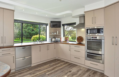 The open kitchen/dining area is the perfect place to sit and prep meals together over a glass of wine after your adventures in Gisborne. If you’ve had your fill of local wineries and need a night in, enjoy a homemade dinner at the 6-person dining table.