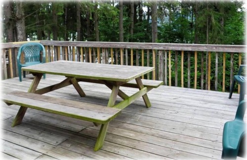 House 28 is one of our largest cottages - three bedrooms and roomy living room and a separate dining room. Its large deck looks out on a spruce woods with the lake scene in the distance. House 28 is conveniently located on State Highway 80 near the hospitality room, and game room.