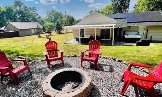 Enjoy your stay at our 3-bedroom house. With 2 queen beds, 2 twin beds, and 1 king bed, this brilliant property offers a soothing escape. Enjoy the convenience of amenities like AC, WiFi, outdoor fireplace, canoe, hot tub, outdoor sitting area and many more. A beautiful retreat for guests looking to unwind and make lasting memories. Our cozy Pocono Mountain home located moments away from all major attractions. This includes Skiing, hiking, paintball, water-parks and golfing within a 10 minute drive. The Indian Mountain Lake community has an abundance of amenities including lakes with a beach, pools, fishing, and multiple small parks for the kids.You'll love our open floor plan and decorations with a fireplace for cold nights and a large deck for the warm days. An excellent place for families and groups. A great place to call homebase while you're away, we hope you enjoy your stay.