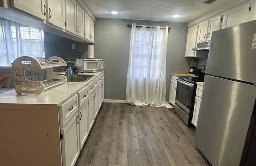 Located in Zephyrhills, this adorable house features 3 welcoming bedrooms with queen beds and 2 charming bathrooms with showers and hair dryers. With amenities like AC, heating, and an iron, guests will feel right at home. Experience what Zephyrhills has to offer with a stay at our enchanting house.