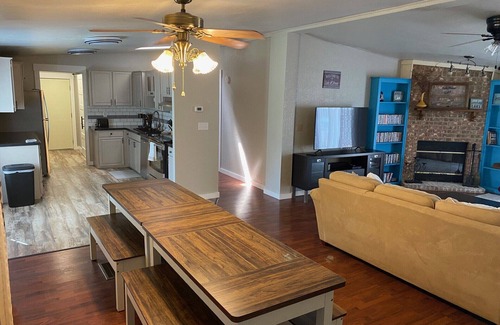 This fantastic newly updated house in Porum is the perfect retreat for guests. With 3 cozy bedrooms including 2 queen beds and 1 full bunk bed, this welcoming home offers all the comforts you need. Enjoy amenities like WiFi, AC, heating, and a washing machine during your stay. Relax in the 2 bathrooms available. We look forward to welcoming you to our place. Book a third night or more and have the use of a golf cart to get you around