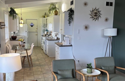 Escape to this lovely, newly remodeled Mid-Century Modern home in picturesque Fort Smith. With 3 bedrooms including a king, a queen, and twin trundle bed, guests will find plenty of options for a cozy night’s sleep. Enjoy the serene bathroom with a shower/tub combo and essential amenities like WiFi, heating, and Bluetooth speakers. The Kitchen is stocked with all the pots/pans/baking dishes/utensils needed to whip up a full meal, as well as a microwave, a blender, an air fryer, a crockpot and a hand mixer. Cooking oils and some spices are provided. Washer and dryer on premises. HDTV’s in Living Room, King Bedroom and Queen Bedroom. We have a dedicated workspace for being productive, whether that’s finishing up a project for work or just getting caught up on emails. The covered, furnished patio gives guests a comfortable place to relax and unwind. You're sure to make fantastic memories with a stay at our place.