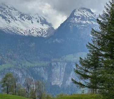 3-Bedrooms Apartment in a Chalet is located in Meiringen, just 28 miles from Lion Monument and 28 miles from KKL Culture and Convention Center Lucerne. The property is around 7.3 miles from Giessbachfälle, 27 miles from Grindelwald Terminal, and 27 miles from Lucerne Train Station. There's private parking, and the property features an electric vehicle charging station. With free Wifi, this 3-bedroom apartment offers a flat-screen TV, a washing machine, and a fully equipped kitchen with a dishwasher and oven. Towels and bed linen are featured in the apartment. For added privacy, the accommodation features a private entrance. Guests can also relax in the garden. Chapel Bridge is 28 miles from the apartment, while Freilichtmuseum Ballenberg is 3.6 miles away. Bern-Belp Airport is 48 miles from the property.