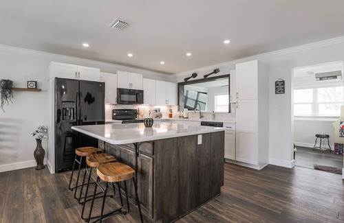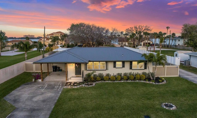 Come stay in this beautifully remodelled 3BR/2Ba home 10 minutes from the worlds' most famous beach. Also, a 10 minute drive to Daytona International Speedway and 10 minutes from Main Street. Less than a 5 minute walk is a brand new park with swings for the kids, a boat ramp, tennis courts and public dock for fishing. Publix grocery store is less than 5 mins down the road. Each bedroom includes a smart TV. Game room offers pool table and a 75" TV. Arcade machine with 10,000 games, a dart board and large connect 4. This house offers a full size washer and dryer, fully equipped kitchen with keurig. Hide away in the secret room, climb the rock wall (150lb weight limit) and play the claw machine. Book now as this is a popular area and house will book up fast, we look forward to hearing from you!