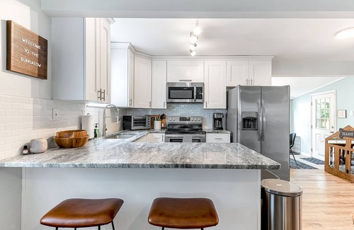 Want to be a 2 minute walk from the beach? Say no more! This cozy bungalow is just what the doctor ordered for you and your family, your significant other, or dare I say, your pups. Come one, come all. Walk the 1 block to the bay in the morning, build your castles, wade in the clear calm bay water, go home for lunch or a bathroom break, then come back for more fun. If you're done with the bay, walk to the local brewery & BBQ joint for some food & drink, or relax on the large back deck!