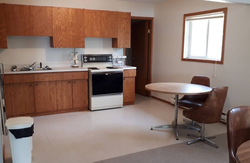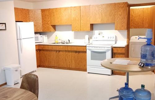 2 bedroom suite attached to garage: ground level 500 sq ft with 2 bedrooms sleep 3 people (1 double, 1 single), apartment sized kitchen/living/dining area, full bathroom.