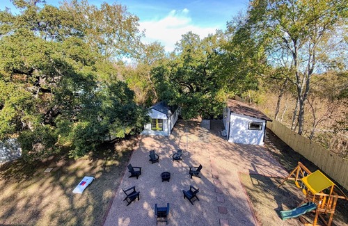 Enjoy a delightful stay at this spacious property with modern appliances, cozy living areas, and ample natural light. With three separate homes and a shared outdoor area and game barn, this is the perfect place for large groups who want a blend of complete privacy and mingling. Austin’s major attractions are just a short drive away!