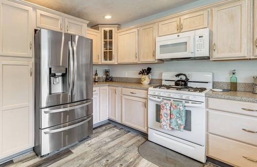 Discover the eclectic spirit of Warrenton, OR, at this 4-bedroom, 2-bath vacation rental. The house is the ideal spot for family and friends to gather, whether you spend starry nights by the fire or host an al fresco feast fresh off the grill. Meanwhile, the adventurers in your group can explore the area's maritime history at Fort Stevens State Park or admire the Victorian-era architecture in town. Your coastal hideaway awaits!
