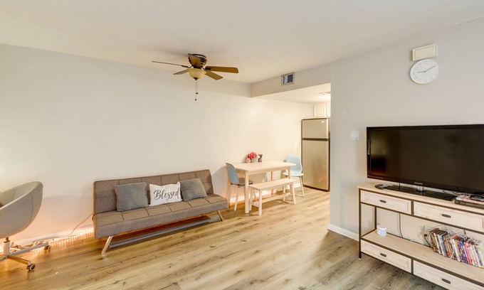 3 Mi to Dtwn Austin: Pet-Friendly Condo w/Pool has 1 Bedroom , 1 Bathroom, and max occupancy of 3 people. The minimum rental for this property is 1 nights, but this can change depending on the season you plan on staying. Previous guests have given good rated it, and VRBO labeled it a top-rated Apartment because of the excellent services rendered by the owner or manager of this Apartment, and has consistently provided great experiences for their guests. Most families or guests that use it recommend it to their friends and some of them are repeat guests. Apartment has a friendly neighborhood, and the Riverside has interesting places to visit. If you want to learn more about the Apartment in Riverside, such as places to visit and things to do nearby, you can check below to learn more.