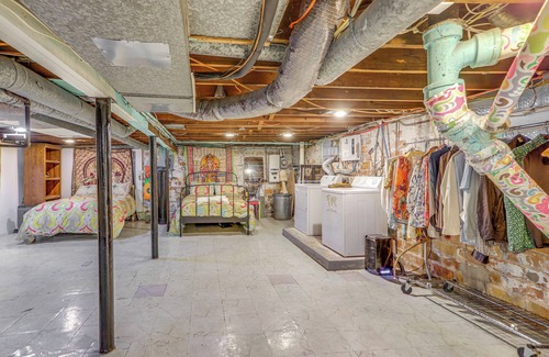 Step into a one-of-a-kind vacation rental in Toledo, OH, where antique treasures, colorful murals, and a collection of musical instruments set the stage for a fun and inspiring getaway. Visit the Toledo Zoo or catch a ball game at the Huntington Center, then return to this 2-bed, 2-bath home to burn off some energy in the home gym or savor a meal in the sunroom as the sun sets. Book now!