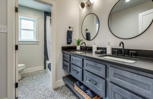 Howdy and Welcome to Aggie Creek! Come enjoy this amazing 5 bedroom 3.5 bath spacious home on a private 1.5 acre wooded lot. Just 3 miles from Kyle Field. Perfect for Aggieland visits, Family events, Retreats and Fightin' Texas Aggie Game Days (Whoop!). Fully renovated throughout, you will enjoy the Chef's Kitchen, Two indoor dining areas, Covered outdoor living space with grill, lighted path to the fire pit, two primary suites, home office/desk space and WiFi. Aggie Owned and Managed.