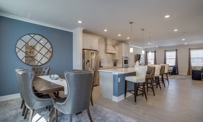 Exciting family adventures await at this bright and modern vacation rental in Berlin, MD. With 3 living areas, 3 bedrooms, 2 full bathrooms, and 2 half bathrooms, this townhome has plenty of space for everyone. Lounge on a peaceful deck of your choice before splashing in the outdoor community pool, zipping down the waterslides at Outdoors Frontier Town Water Park, or exploring Ocean City Boardwalk. Endless fun is at your fingertips! Return home and watch a movie on one of the 6 Smart TVs.