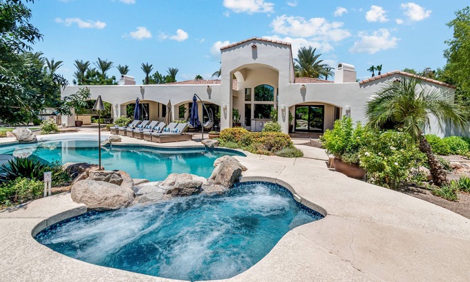 Best-rates for the South Scottsdale villa starts from $2,300 per night with includes Wellness Facilities, Fireplace/Heating, Entertainment, Kitchen, Parking, Ocean View, Security/Safety, Barbecue/Outdoor Cooking, Child Friendly, Internet, TV, Private Pool, Balcony/Terrace, Sports/Activities, Bedding/Linens, Guest Services, Hot Tub, Air Conditioner, Pet Friendly, Pool, View, Laundry StayAndPlay offers fully equipped golf villas, golf hotels, golf resorts, luxury golf cabins, and exclusive golf retreats, making it easier than ever to find your perfect golf escape — ideal for families, peaceful getaways, or pet-friendly retreats with the whole crew.