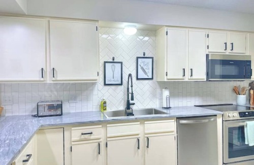 Enjoy Branson and relax in this fully remodeled and completely newly furnished (8/2024) spacious condo loaded with amenities at the popular Thousand Hills Golf Resort. Elegance and luxury awaits you in this stunning condo that provides you with comfort, beautiful décor, furnishings, upscale amenities, and the perfect location in the Heart of Branson just behind the famous 76 Strip. The condo is just minutes away from everything Branson has to offer for your memorable vacation.