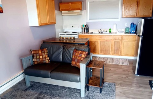 This charming 550 sq. ft. apartment is the perfect home base for exploring Michigan's Upper Peninsula. Just a close to the Mackinac Island Ferry, Mackinac Bridge, Castle Rock, and downtown St. Ignace, you’ll be ideally situated to explore all the area. Whether you're visiting Mackinac Island, Hiawatha Trails, or nearby attractions, this cozy retreat offers comfort. Relaxed in a comfy bed and air mattress, a full kitchen, bathroom, TV, Wi-Fi, and wide free parking space for extra convenience.