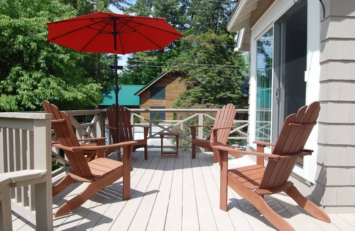 Our charming cottage, Adirondack-style home, is located in the heart of Lake Placid, in a quiet residential neighborhood, just two blocks (a 3-minute walk) from Main St. shopping and restaurants. Hillcrest Park is located steps away with a full playground for children. Our home sleeps 10 comfortably. Bedrooms are air-conditioned during the summer months. A large screened-in porch, fenced-in yard and sun deck with a gas grill allows you to enjoy some outdoor fun, and don't forget to stop in the outdoor hot tub for a dip! Inside, enjoy the wood-burning Vermont stove in the living room, or watch a great movie in the cozy den while your children enjoy playing some air hockey/ping-pong in the furnished basement. Off-street parking allows for three (3) small cars or two (2) SUVs. The property is semi-wooded with a mix of White Pine, Birch, Aspen, and Scotch Pine. Views of High Peaks to the southwest.