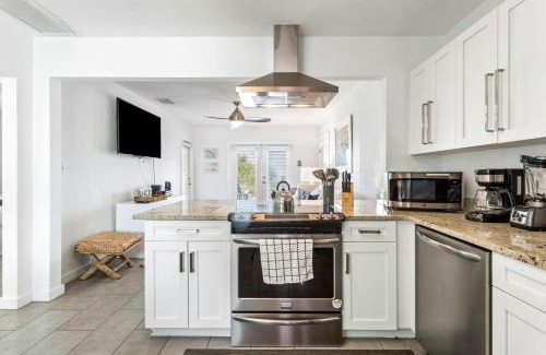 3 Palms Beachfront Cottages is located in Clearwater Beach, just a 5-minute walk from Indian Rocks Beach and 6.7 miles from Pier 60. The air-conditioned accommodation is a 2-minute walk from Belleair Beach, and guests can benefit from on-site private parking and complimentary Wifi. The tour desk is available to assist guests in planning their days out. Featuring a balcony, this vacation home also comes with a cable flat-screen TV, a well-equipped kitchen with a dishwasher, an oven, and a microwave, as well as 2 bathrooms with a shower and a hair dryer. For added privacy, the accommodation features a private entrance. John's Pass is 10 miles from the vacation home, while John's Pass Village and Boardwalk is 10 miles from the property. St. Pete-Clearwater International Airport is 10 miles away.