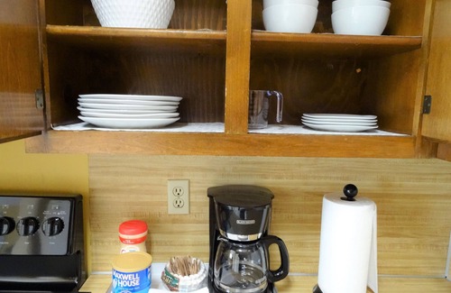 - Fully equipped kitchen with a refrigerator, rang stove & fan hood, dish washer, microwave, toaster, kettle, hand blender, one cup K cup coffee maker, 4 cups drip coffee maker, cookware, pots&pans, dinnerware & utensils, sugar and cream, napkins, paper towels, trash bags, etc.