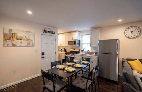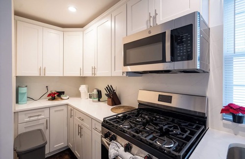 Located on the first floor within a 3-story building, this newly renovated and modern apartment is ideal for groups or large families visiting the city. The apartment boasts four elegantly styled bedrooms and one full bathroom. Guests can also enjoy convenient parking with one reserved parking space in the backyard and free street parking (if available).