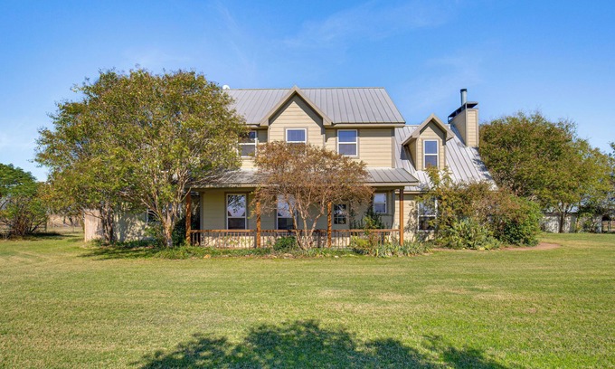 Planning a family reunion or a quiet country escape with your loved ones? Book this vacation rental in Godley, TX! This 5-bedroom, 4.5-bath home boasts modern comforts and on-site stables, making it easy for your whole crew and horses to feel at home. Stay on-site to see livestock and enjoy the property's scenic surroundings. Looking to venture out? Explore Glen Rose or go boating. Afterward, relax on the front porch!